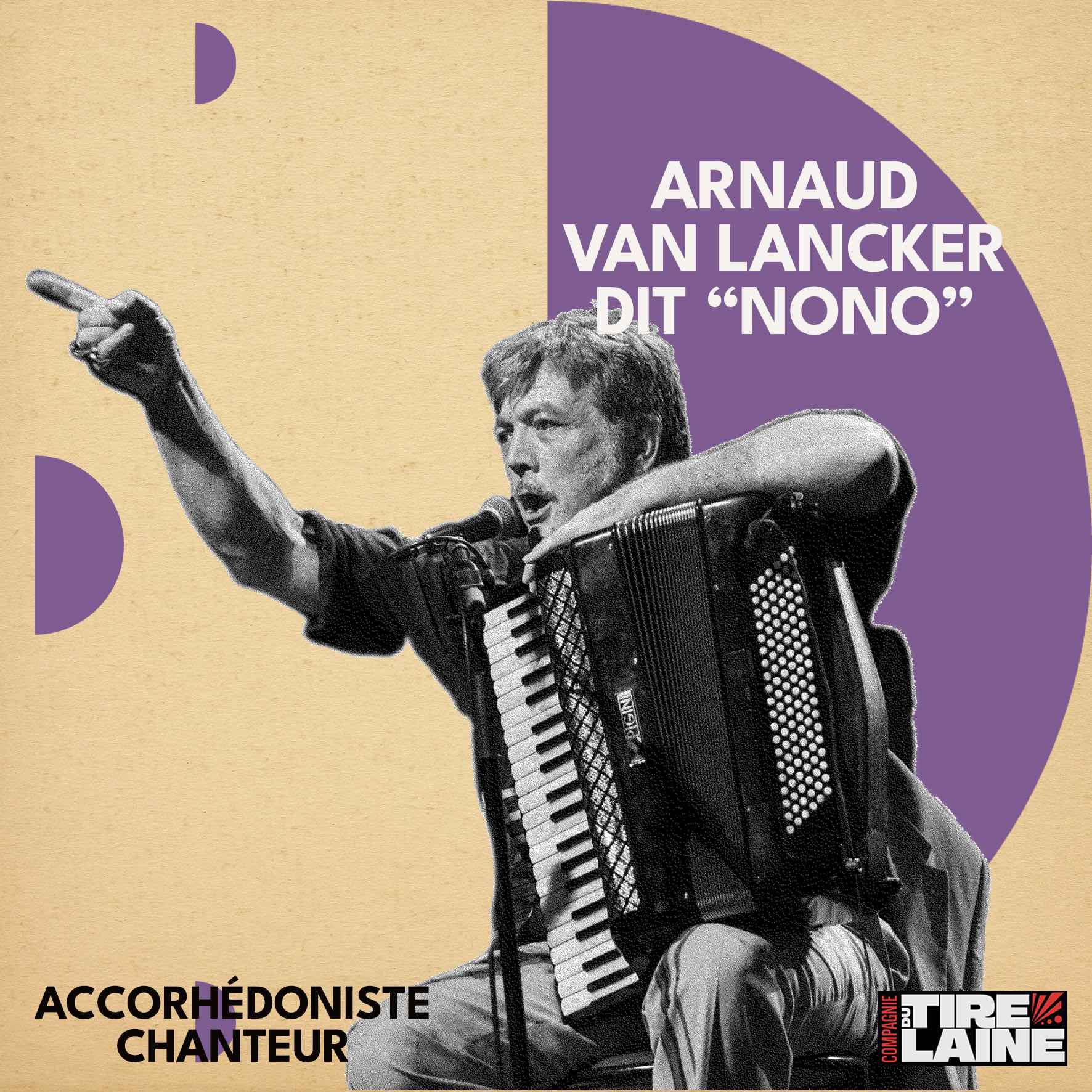 “ Tour à tour accordéoniste, conteur, acteur, mélodiste, Nono est la figure de proue de la compagnie, le personnage autour duquel tout s’articule. “Je suis un dévoreur qui a envie de goûter à tout. Le principal est de faire et de croire à un art, à une humanité”. Ainsi, derrière les spectacles d’histrions, les scènes bouffonnes et les pitreries de saltimbanques, le fil conducteur du Tire-laine reste le rapport au social.”